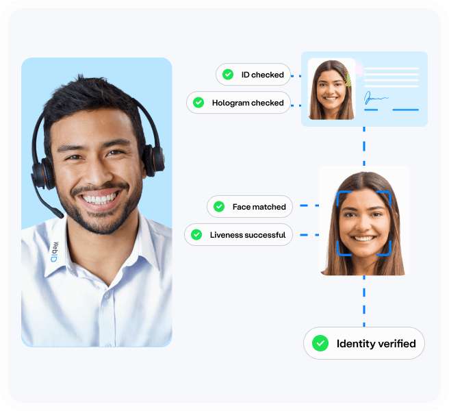 VideoID (Review) is our eIDAS compliant solution that is also AML-compliant in most countries worldwide and boosts your security level by reviewing the automated identification process by one of our ident experts.VideoID (Review) is our eIDAS compliant solution that is also AML-compliant in most countries worldwide and boosts your security level by reviewing the automated identification process by one of our ident experts.